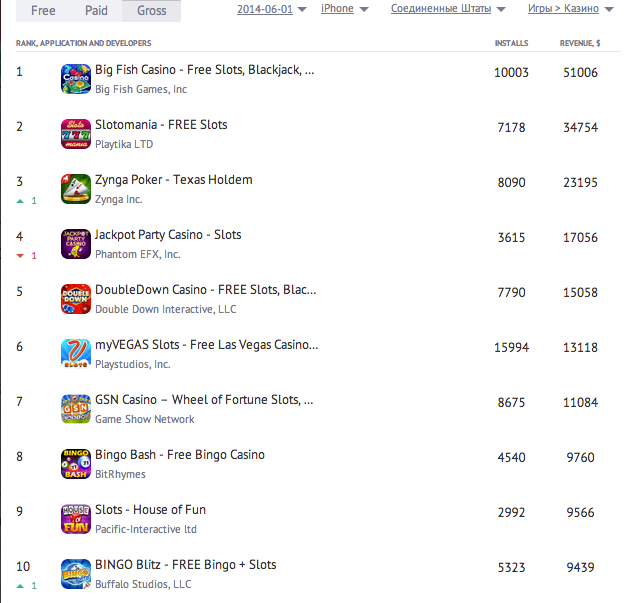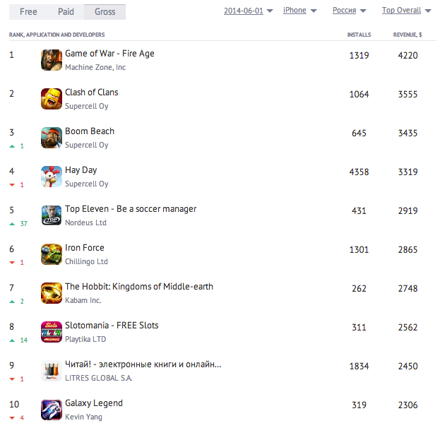 Подключая свой iTunes connect, вы получаете доступ к удобной системе аналитики по 25 самым крупным странам и по ТОП-400 позиций по каждой из них: