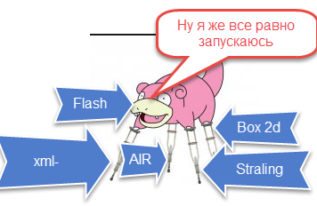 - API для разработки игр (и это самое важное). API Flash Playerа это не API для разработки игр, а для написания простых скриптов для взаимодействия с анимацыэй и логики для анимации, как макросы в Excel. Игровое API должно быть предназначено в первую очередь для создания игр, а не просто давать возможность создать игру, а также избавлять от написания велосипедов таких как(2d Physix, 3d Physix, Event Sytem, UI System, Path Finders, Serialization System, и т.д), и делать взаимодействие между всеми игровыми механизмами бескостыльным, оптимальным и удобным. Словом, не так, как принято во Flash.