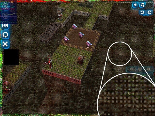 Теперь про то что имеем. Во-первых чё мешает заполнять нулями рамку эту с муаром? Если мешает — выдвинь битмап и уменьши разрешение флешки. Я конечно не знаю как и куда ты рисуешь пиксели (ты вроде и не рассказывал) но вроде и так и этак можно сделать то что я написал для устранения проблемы (предложение такое). Дальше идем. Вода. Как правильно заметил MidnightOne в топку её если она жрёт ресурсы. Анимированная лава решит вопрос. К тому же получишь контрастные границы дорожек (они будут залиты светом от лавы). Откуда там лава? А откуда там пришельцы? Сай фай же. (еще вариант зеленая радиоактивная жижа, только тогда вообще всё сольется в единый зеленый комок трешевых ужастиков) Тень от монстров — я на картинке вижу очень чёткую тень, хотя от стен отходит мягкая. Надо либо там менять либо здесь. Если стенсил не пошёл, значит мягкая везде. Вот такие предложения по тому что вижу.