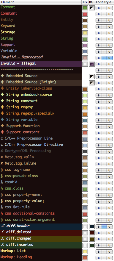 Нашел в notepad++ вот такую цветовую схему