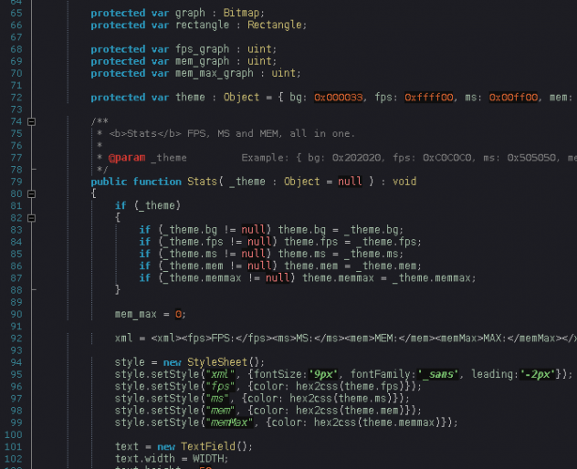 Недавно я открыл для себя тёмный фон подсветки синтаксиса и набросал схему, которая не так напрягает глаз, как стандартная. Собственно скрин: