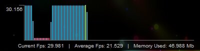 Для учета и контроля fps и используемой приложением памяти, был написан набор классов StatisticFrame. С его помощью можно наблюдать изменения параметров при различных ситуациях и нагрузках.