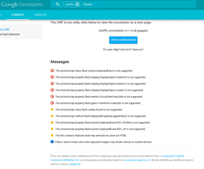 Пойдём искать счастье к Google Swiffy.