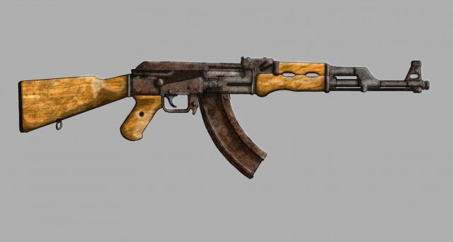 Смысл рисовать здоровый полноразмерный калаш, с текстурами реальными и т.д, если потом все испортилось фильтрами а в игре еще маленький размер будет)