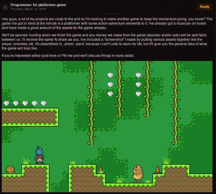 Все началось с того, что я просматривал объявления на форумах newgrounds. Одно из объявлений привлекло мое внимание. На нем был нарисован синий человечек и монстр похожий на картошку. Больше всего мне понравился монстр похожий на картошку.