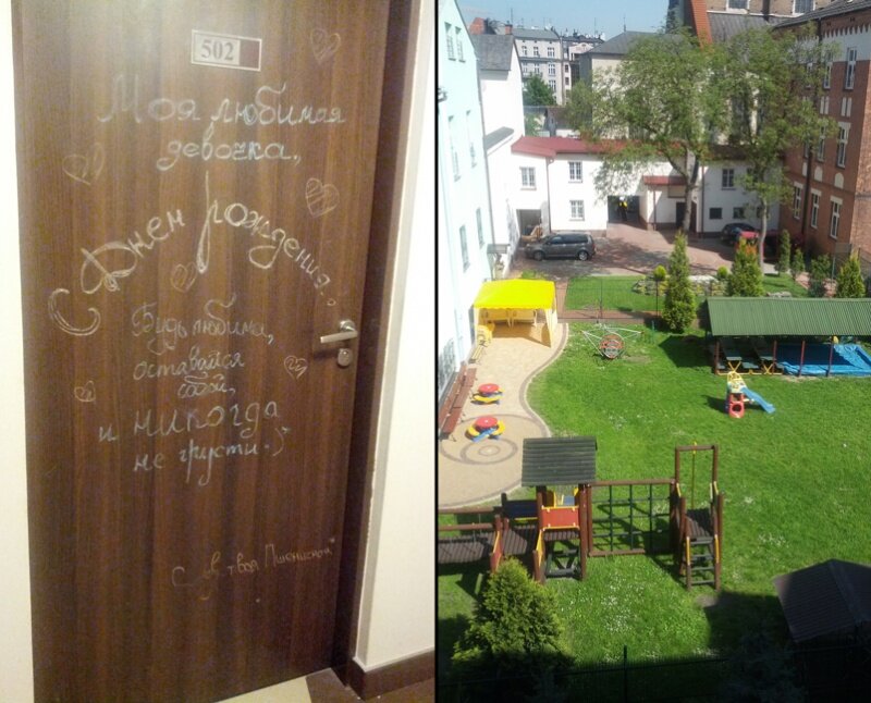 За ночь конечно могут вырасти пейсы и начнутся сложности с выговариванием буквы р, в остальном все шикарно. Опекшись в Амстердаме (4х звездочный отель был хуже хостела) я выбрал хостел и очень преочень рад. Из окна вид на католический собор и лужайку. Внутри вместо трех человек, живу только я, а значит можно приходить когда хочешь, никого не побеспокоишь. Цена 135 злотых за три ночи ~ 44 доллара. На соседней двери поздравления с днем рожденья на русском. Рассказ затянулся, попробую написать категориями.