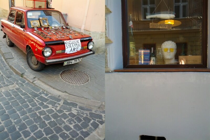 Еще мне показалось, что Львов это город мелочей. Возможно это только иллюзия, но Львовские кафешки выглядят гораздо естественнее, чем в других частях Украины. Т.е. чтобы завлечь покупателя в Харькове жутко изгаляются, обставляют разными ништяками подоконники, обклеивают стены, а львовяне как-то естественней подходят ко всему. В этом плане там заметна эволюция самого виденья, хотя наверное человеку, который выходит в кафе раз в полгода все равно. Лишь бы еда была норм. И еда там норм, но об этом попозже.