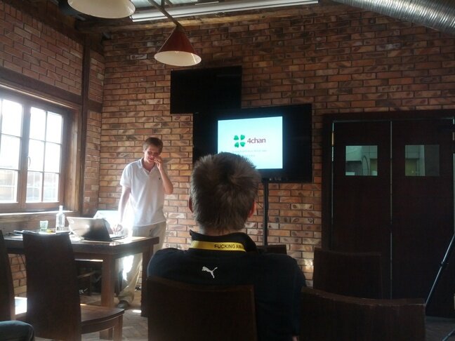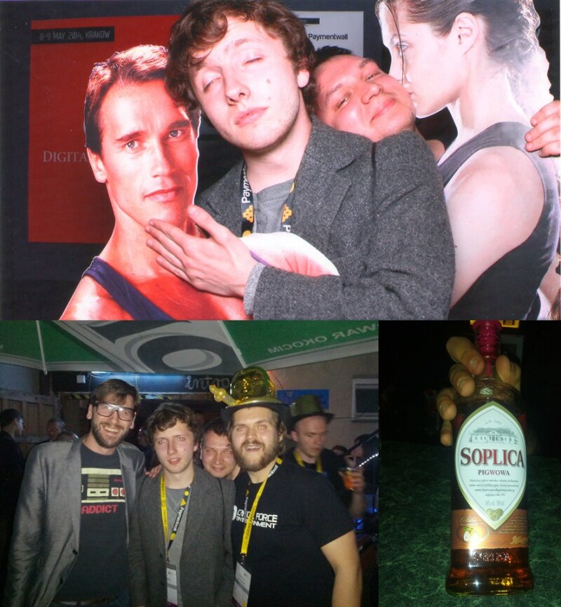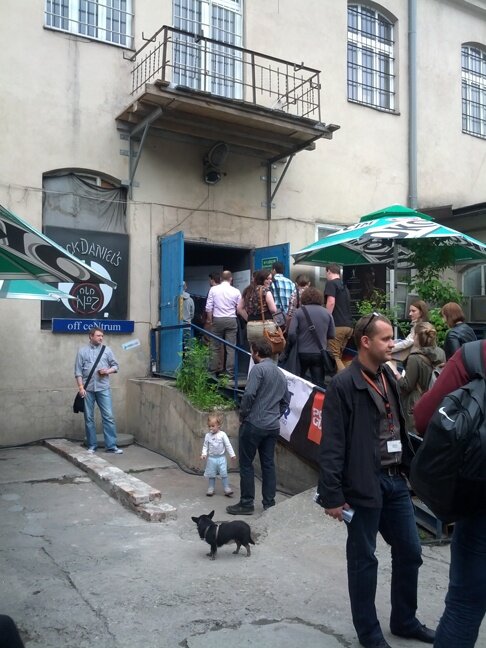 После нескольких дней прогулок по городу, настало время посетить саму конференцию. Точнее препати, на которое я подписался. Когда я нашел место препати у меня возникло страшно чувство, что конференция будет такой же. Валун встал в горле, когда действительно увидел очередь людей похожих на геймдевелоперов, стремящихся ворваться в это неприветливое здание. Очередь быстро рассосалась и где-то через полчаса я уже тусил внутри. Там было плохо, да. Расколошмаченный пол, побитый стены, похоже на андеграудную тусовку Wu-tang. Внутри было много народу, но не было особо тесно, мелькал зеленый свет, стояла куча бесплатного пива и народ что-то активно обсуждал по-польски. Почти сразу же я увидел отца прародителя живого и сущего, писателя бложика о флеше Вадима Старыгина (aka badim) с женой. До этого его я знал только по чатику и был настроен на встрече довольно скептически, поскольку он писал “ложу”, “споймал” и прочие вещи такого типа, после которых ясно, что общение с человеком будет не особо интересным, но блин, я никогда так не ошибался. Вадим оказался очень крутым собеседником и одним из самых интересных девов, с кем мне довелось общаться, если бы не он мое время на конфе сократилось бы значительно. На препати проходил Big Indie Pitch и правила вроде не особо отличались от описанных выше. Т.к. я не показывал игру и больше какого-то движения не было, мы сидели с пивом и чипсами и еще нарезанной морковкой (лолвут?). А Вадим в это время приз взял, можете узнать у него какой.