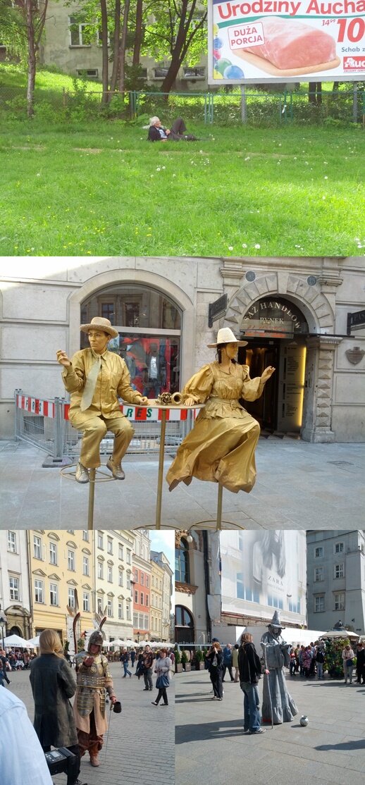 В центре жизнь просто кипит. Встречал несколько раз рыцарей и стражей бродящих в поисках туристов, шоу с застывшими людьми, оперные певцы, вещающие прямо в центре Кракова (хотя ВРОДЕ БЫ готовились к большому симфоническому концерту на открытом воздухе в честь 650 летия симфонического оркестра).