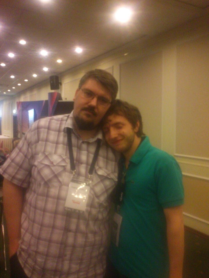 Видал локальных звезд Галенкина и мистера 100/100 Антона Логвинова. С ними все фоткались и норовили поболтать. Тут-то я и удивился, почему Рами из вламбера, а не они — основной гость конференции. Рами почти не знают местные девелоперы и я даже помню, как в прошлом году, когда называл его игру и его компанию на круглом столе для инди, все только пожимали плечами. Ставка была рискованной, но Лерика не прогадала. Он оказался крутым докладчиком и шоуменом, что конечно гораздо важнее на конференциях. По моему все были восторге, даже не смотря на то, что он не приехал в нужное время и его доклад был смещен.