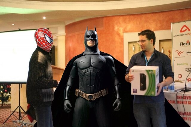 С Антоном Карловым получилось немного проще. Он выиграл покупку сайт-лока компанией Spil Games в номинации — «Игра прорыв». Поэтому из материальных составляющих была торжественная грамота и чек от компании Spil Games на 1000 долларов. Но с чеком они немного перестарались и изготовили его на пластике размером 1х0,5 метра. Был бы он на бумаге, я бы его увез, свернув в рулон. А так, к сожалению, пришлось его оставить.