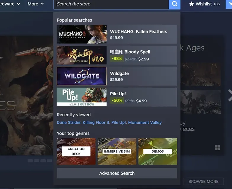 Поиск на большем числе страниц: строка доступна почти везде и стала «умнее» — подсказывает игры по интересам и показывает недавние запросы.