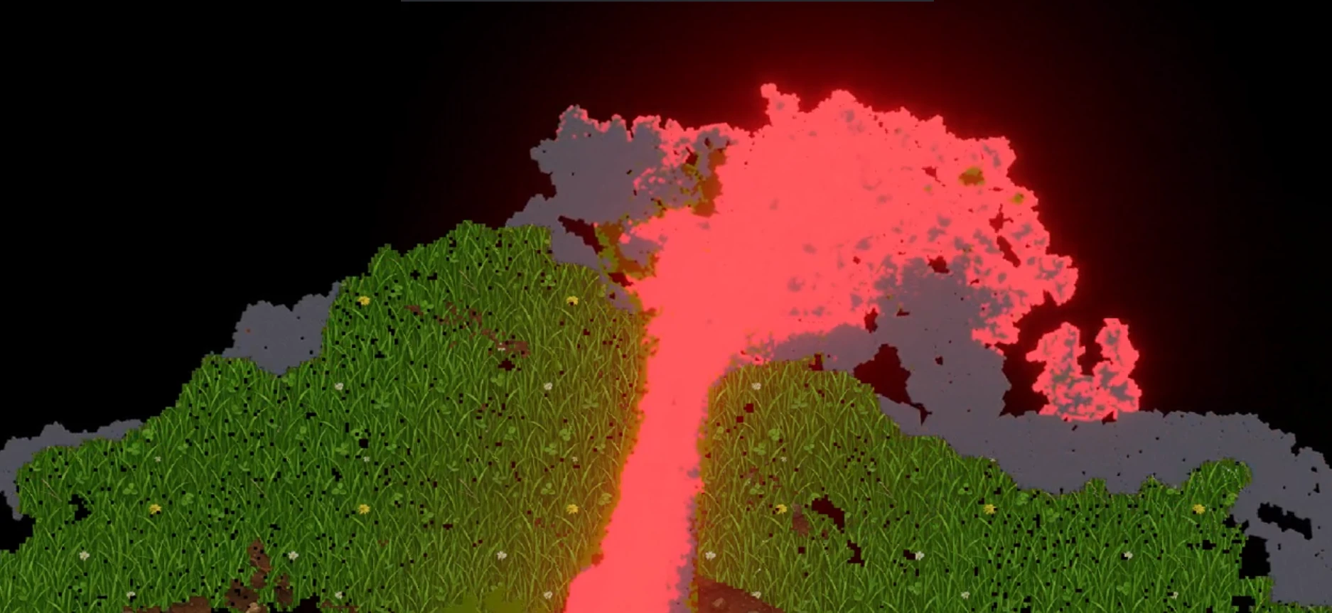 Инди-разработчик Zolden показал стильную визуализацию сцены, напоминающей извержение вулкана. Это часть его рабочей сборки для Simulario - экспериментального проекта, где поведение мира строится на 2D физике и взаимодействии частиц.