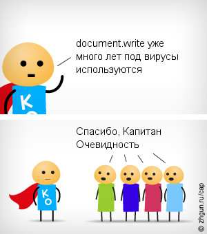 Что интересно — у нас в коде становится пусто, если смотреть дебаггером (именно дебагерры видят изменения на страницах в dom). Но после запуска такого дела — дебаггер нифига не увидит — будет пустой innerHTML , а самое классное — функции то в памяти будут уже и будут работать без проблем :) Можем туда для отвода глаз насувать мусора, который не работает :) Я небольшие пустышки советую туда вписывать. Чтоб человек интуитивно увидел, что там что-то есть, но править там нечего и забросил ковырять нашу игрулину. Это как в политике — воруют миллионы, но ставят скаймейки дешевые. Чтоб пенсионеры говорили «какой молодец, мне скаймейку поставил». А за миллионы забывали украденные.