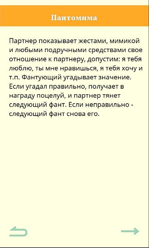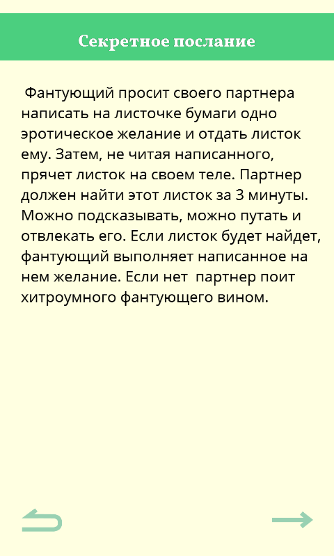 Понятно, что человек я законопослушный, и красть текст фантов с бумажных колод — не камильфо. Поэтому был найден фрилансер, мастер эротических рассказов =) Все фанты мне обошлись в 5 000р (вроде всем интересны цифры, да?), по 50р за штуку. Т.е. всего в игре 100 уникальных фантов. Впрочем, если приложение будет пользоваться популярностью, я обязательно закажу и встрою еще 100 штук.
