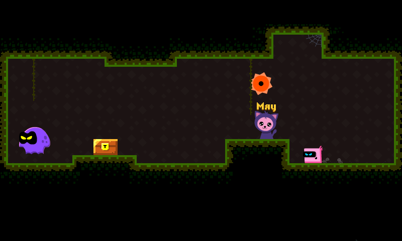 Но в итоге решил, что сеттинг подземелья будет лучше смотреться, чем чёрная игра. Также хотел ещё сделать разнообразные артефакты (а сделал котят) и альманах с описанием врагов и ловушек (но решил не усложнять себе жизнь).