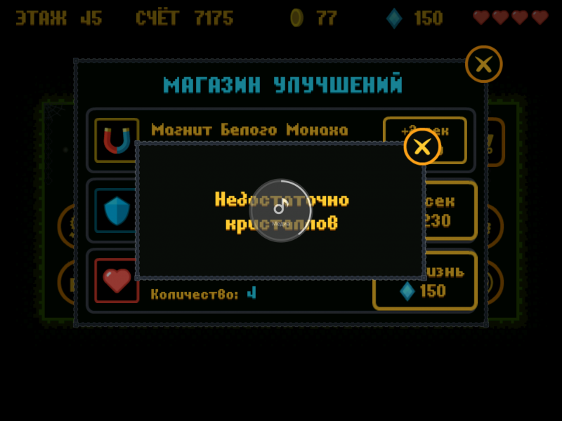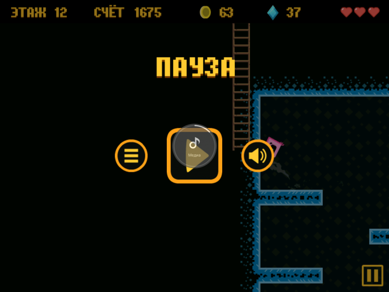 Но там есть небольшой косяк на мой взгляд. Когда проигрываешь и оказываешься в главном меню, то возникает ощущение что начав игру заново придется все первые уровни проходить заново, и прям так не хочется нажимать кнопку играть! Но я нажал, и был приятно удивлен тем, что уровни стали другими, для меня это не стандартная вещь. Возможно, вам стоит отдельно обратить внимание игрока на этот момент, чтобы он легче стартовал заново, а не удалял игру:) Может быть, после проигрыша проваливать игрока на первый этаж и анимированно менять первый уровень на другой.
