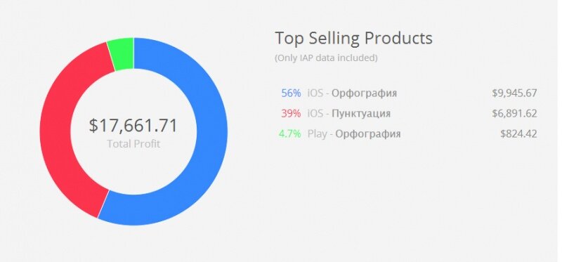 Общая конверсия скачек к покупкам: ~2,4%. Могло быть и лучше, если б выпускал регулярные апдейты, как контентные, так и функциональные. Если б не забросил «Пунктуацию» после релиза. Если б… если б…