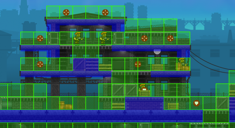Быстро допилив и продав «парашютистов» я задумался о том что делать дальше. Я решил упростить себе задачу и сделать пошаговую тактику. Долго думал по поводу деталей реализации. Top down — слишком просто и невыразительно. 3D — даже если брать готовый двиг, требует очень много человеко часов на разработку контента (уровни, персонажи, анимации). Изометрия — опять гемор с контентом, для одного человека напряжно. Во время всех этих размышлений ко мне пришла светлая мысль, как сделать все еще проще. Я решил совместить пошаговую тактику с платформером.