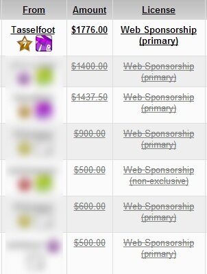 И я принялся ждать, спустя пару часов появился первый бид в 500 зеленых, а на следующий день его перебили в 600+коммисия ФГЛ, дальше неделя затишья, за неделю посмотрели всего-то 10 спонсоров. Я был расстроен, начал делать рассылку, сначала сделал рассылку по тем спонсорам с которыми я работал. И тут прилетела ставка на сайтлок в 500, в которой спонсор говорил что подождет сколько нужно пока я продам праймари лицензию, а вот этому я уже был рад)… спустя еще пару дней, спонсор который поставил 600 зашел, поиграл еще часик в игру и поставил 900+коммисия. И опять 2 недели затишья, уже и первая ставка истекала, я уже начал подумывать запускать Last Call, но тут Боженька надомной смиловался и прилетела ставка 1437.50. Такая интересная сумма, напомнила мне детство, когда скидывались с друзьями на зефиринку и я последние копейки из кармана выскребал)).
