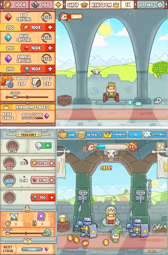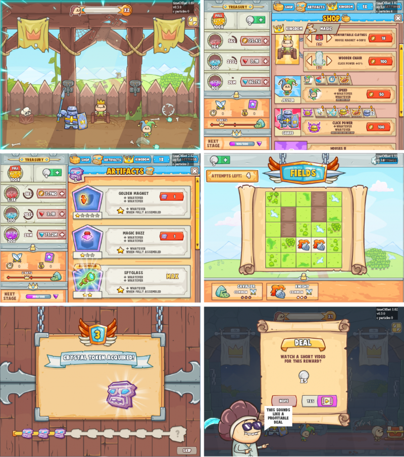 В середине августа я снова вернулся к АЙДЛу после большого перерыва и осознал насколько все плохо. Некоторые механики не работали как надо, а арт вызывал рвотные позывы и желание отформатировать винт. Были мысли о закрытии проекта. Но желание сделать «лучшую айдл-игру, в которую сам бы играл» взяло верх и я начал методично переделывать плохие механики и перерисовывать арт. Некоторые элементы переделывались до 5-6 раз. До и после: