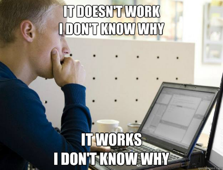 Стоит упомянуть технологию отдельно. Взял Haxe + OpenFl с прицелом на Flash, HTML5, Android и iOS. Это было ошибкой. HTML5 таргет в OpenFl на тот момент был ужасен, что породило несметное количество разнообразнейших багов и кучу потерянного времени на их устранение. Порой приходилось делать правки в самом OpenFl, в BitmapData.hx например. В общем мой опыт работы с OpenFl точно описывает эта пикча: