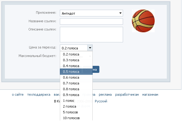 Средняя цена клика 0.2 (сейчас минимальная) голоса для Москвы и Питера больше, 0.4-0.8 с ценой 0.2 переходи будут но очень редко не пробивается. Цену рекламы ставит рекламодатель от 0.2-10 гол.